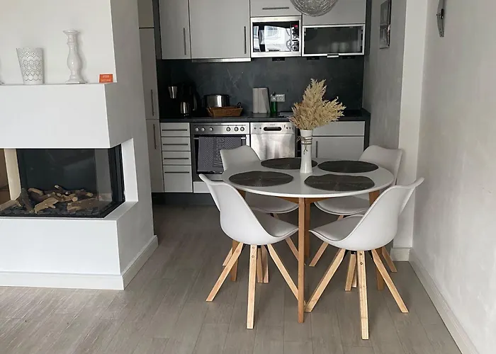 住宿处有设施齐全的厨房。 驾车59分钟就可以到罗斯托克-拉格机场,公寓距离Boergerende, Wendeplatz公交车站150米。